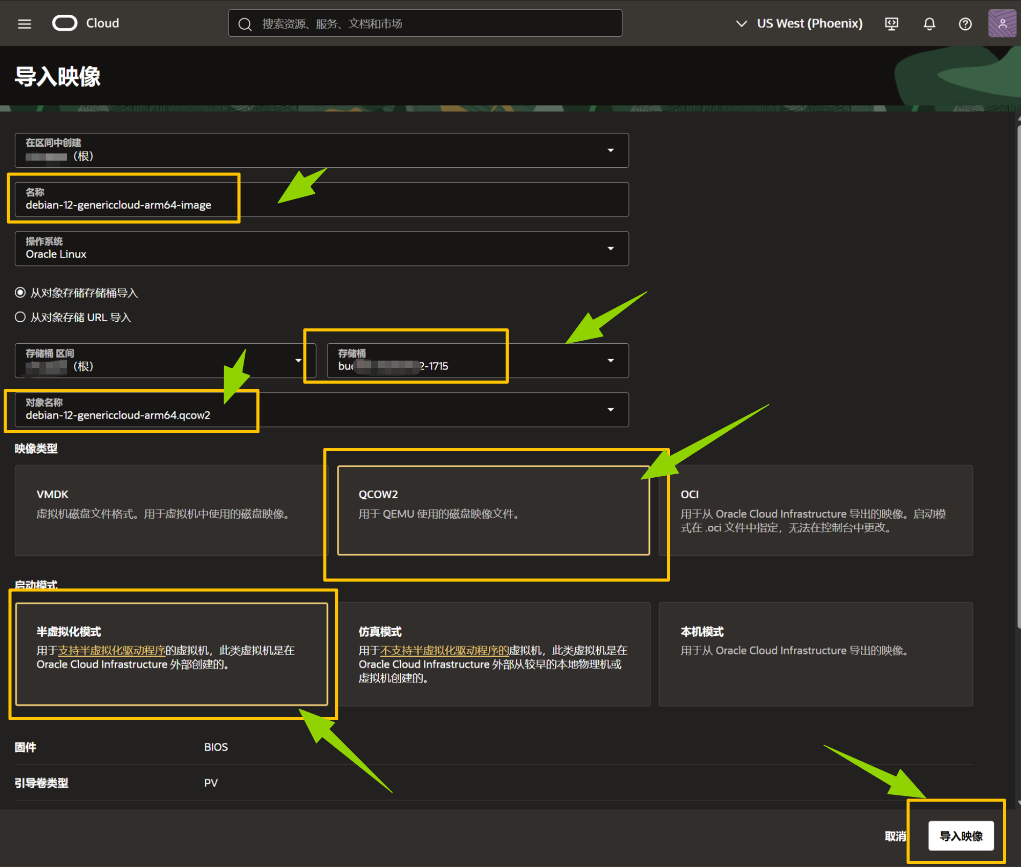 甲骨文云提供了多个系统镜像,但是没有Debian的镜像,虽然和Ubuntu差不多,但是Debian的稳定性相对来说更好。今天我来说下,在甲骨文云 (OCI) 上通过定制映像安装官方 Debian 系统,大概流程为:首先下载Debian官方 Cloud Image,上传到 OCI 对象存储,再导入为自定义映像,最后创建实例。 1、Debian镜像下载(本文以 Debian 12 为例,Debian 13操作是一样的) Debian 12官方云镜像仓库下载地址:https://cloud.debian.org/images/cloud/bookworm/latest/ Debian 13官方云镜像仓库下载地址:https://cloud.debian.org/images/cloud/trixie/latest/ 选择文件: 寻找以 debian-12-genericcloud-amd64.qcow2 或 debian-13-genericcloud-amd64.qcow2 结尾的文件,下载到本地电脑。 2、上传并导入 进入甲骨文云管理控制台,进入【存储】--【存储桶】页面,若还没有存储桶,点击【创建存储桶】按钮创建一个(注意,有些网络创建存储桶按钮是灰色的,无法点击,这时候需要科学技术处理下),然后进入存储桶,在【对象】选项卡,点击【上传对象】将刚下载的 .qcow2 文件上传到 OCI 对象存储里面。 接下来,创建自定义映像 (Custom Image),进入 【计算/Compute】 -> 【定制映像/Custom Images】 -> 点击【导入映像/Import Image】按钮,进入导入映像操作界面,操作系统选择“Debian”,默认系统会自动带出你刚上传的镜像文件或自己选择,映像类型/Image Type选择【QCOW2】,启动模式/Launch Mode选择【半虚拟化模式 (Paravirtualized Mode)】,然后点击【导入映像】,操作界面如下图示,整个导入过程预计20分钟左右。